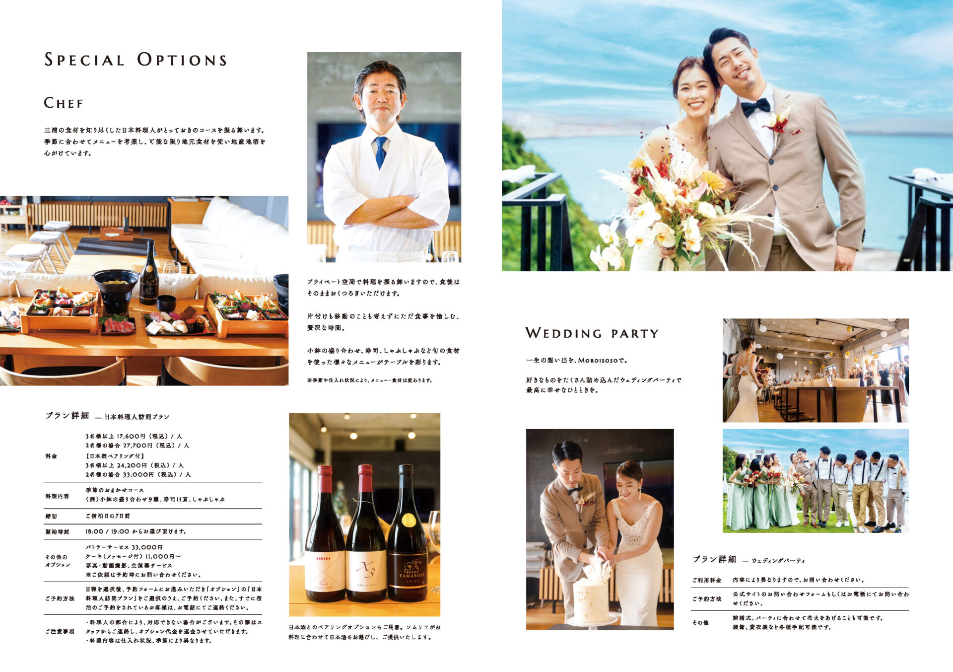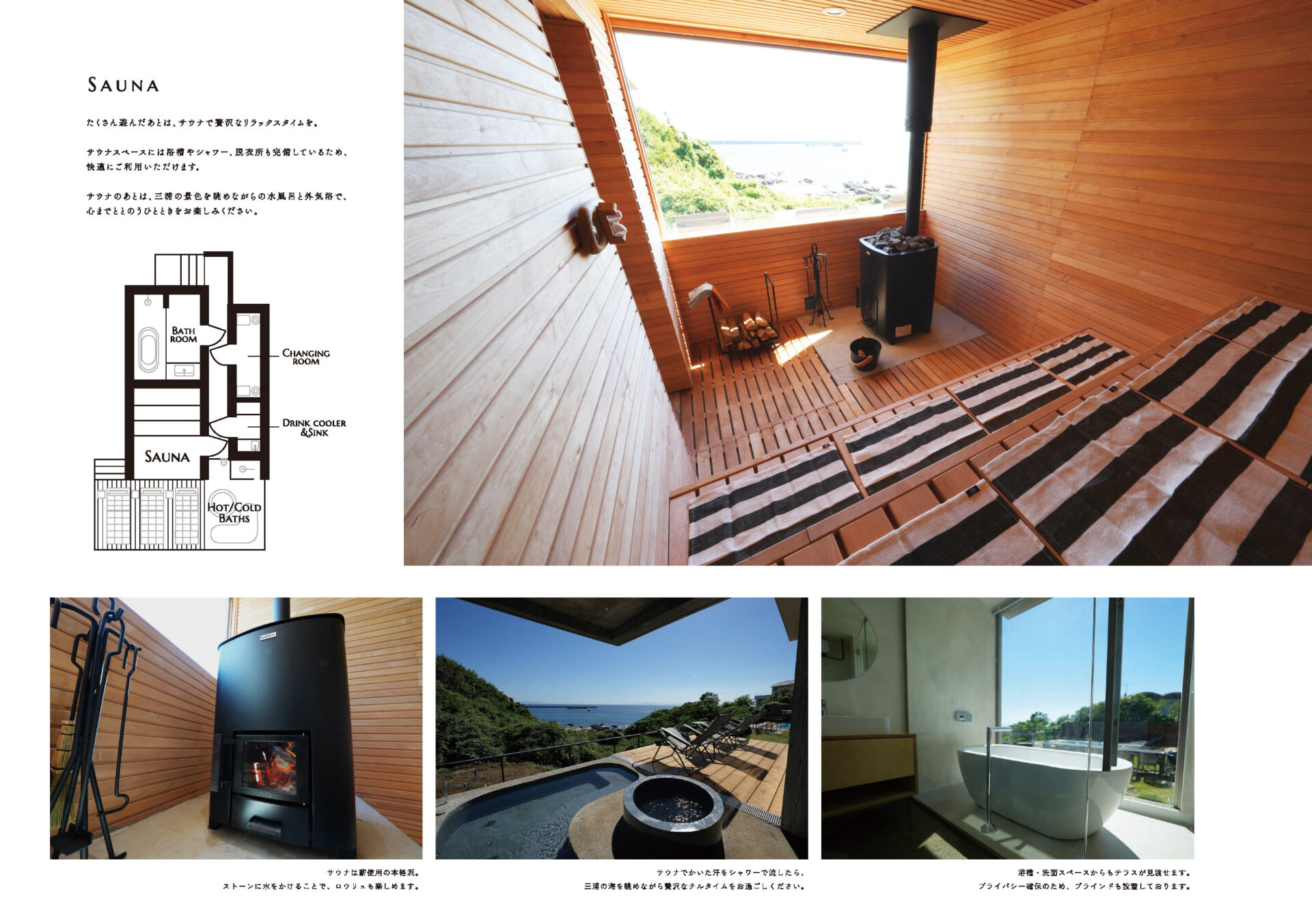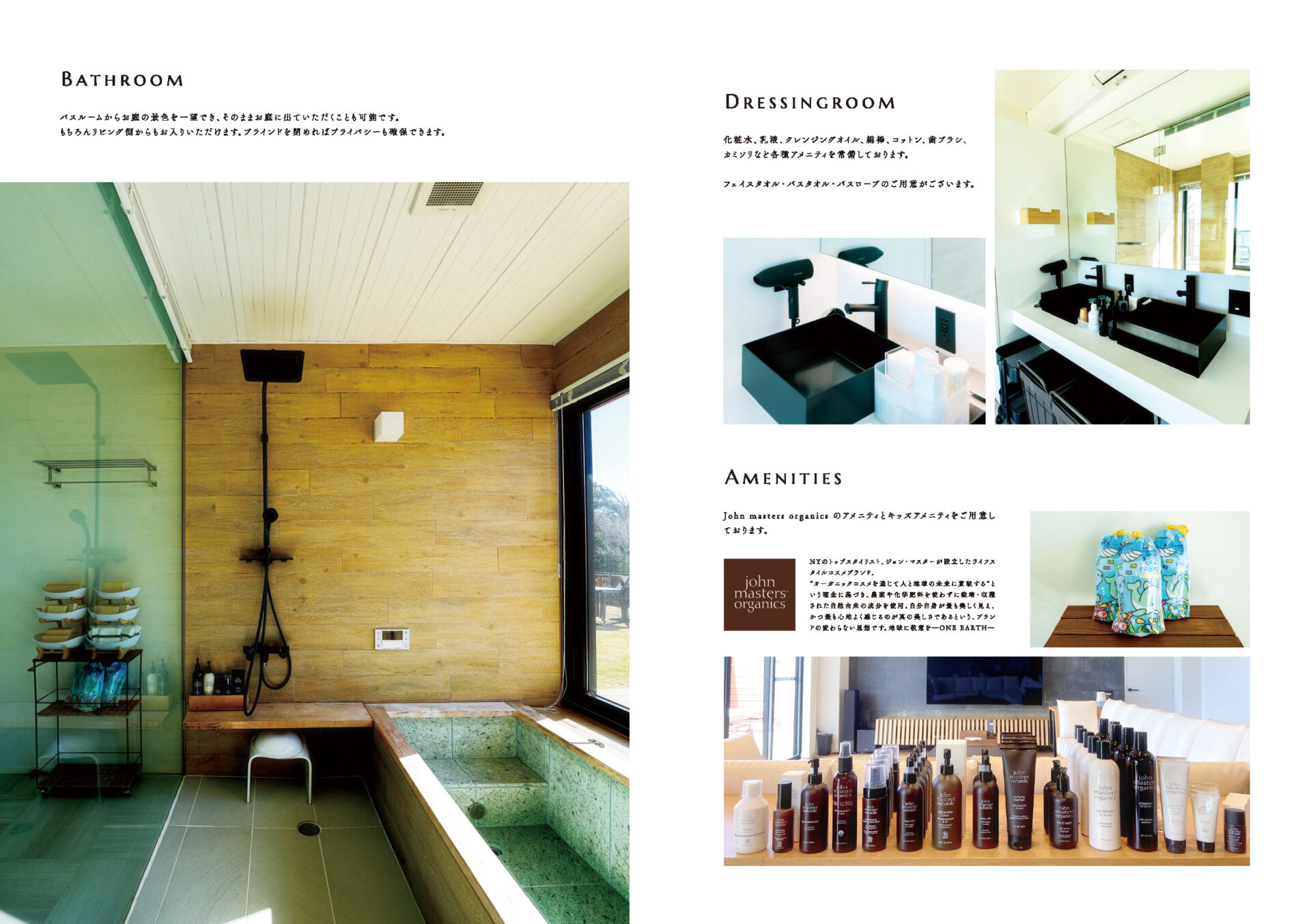 MOROISOSOの施設紹介パンフレットを制作しました。 施設のリニューアルに伴い、パンフレットの内容も一新。 建物の外観やインテリア、プールやBBQ設備、サウナ、アメニティなど、多岐にわたる魅力を視覚的に訴求しながら、「この施設で過ごす時間」そのものをイメージできるような構成とデザインに仕上げました。 また、備品の使い方やルールがひと目で伝わるよう、機能性とホスピタリティを両立させた誌面設計を意識しています。 実際に滞在するゲストが手に取ることで、期待感を高めつつ、安心して施設を活用していただけるような導線を目指しました。